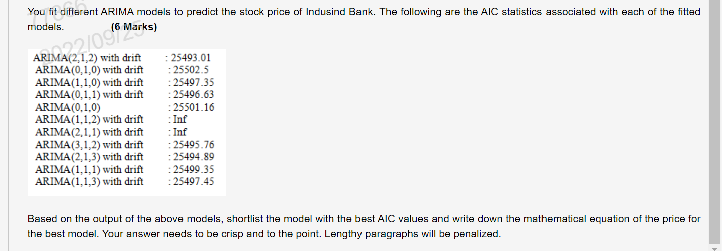 Solved You Fit Different Arima Models To Predict The Stock Chegg Com
